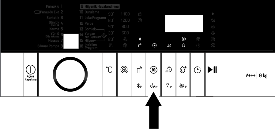 Ayrıca yıkama başladıktan sonra çalışmakta olan programa uygun yardımcı fonksiyonları seçebilir veya iptal edebilirsiniz. Yıkama sırasında yardımcı fonksiyonun seçilemeyeceği bir adıma gelinmişse sesli uyarı verir.